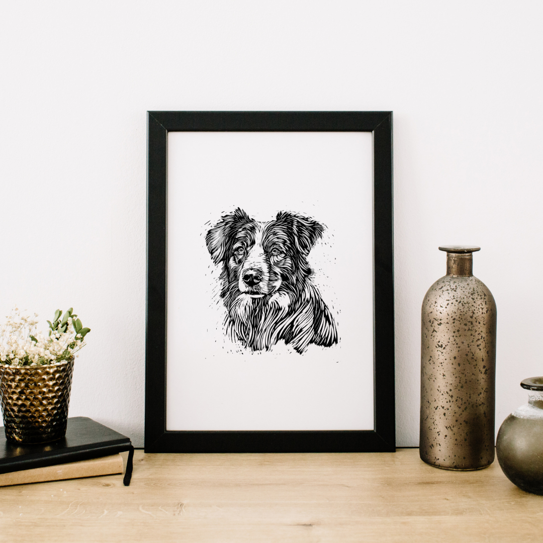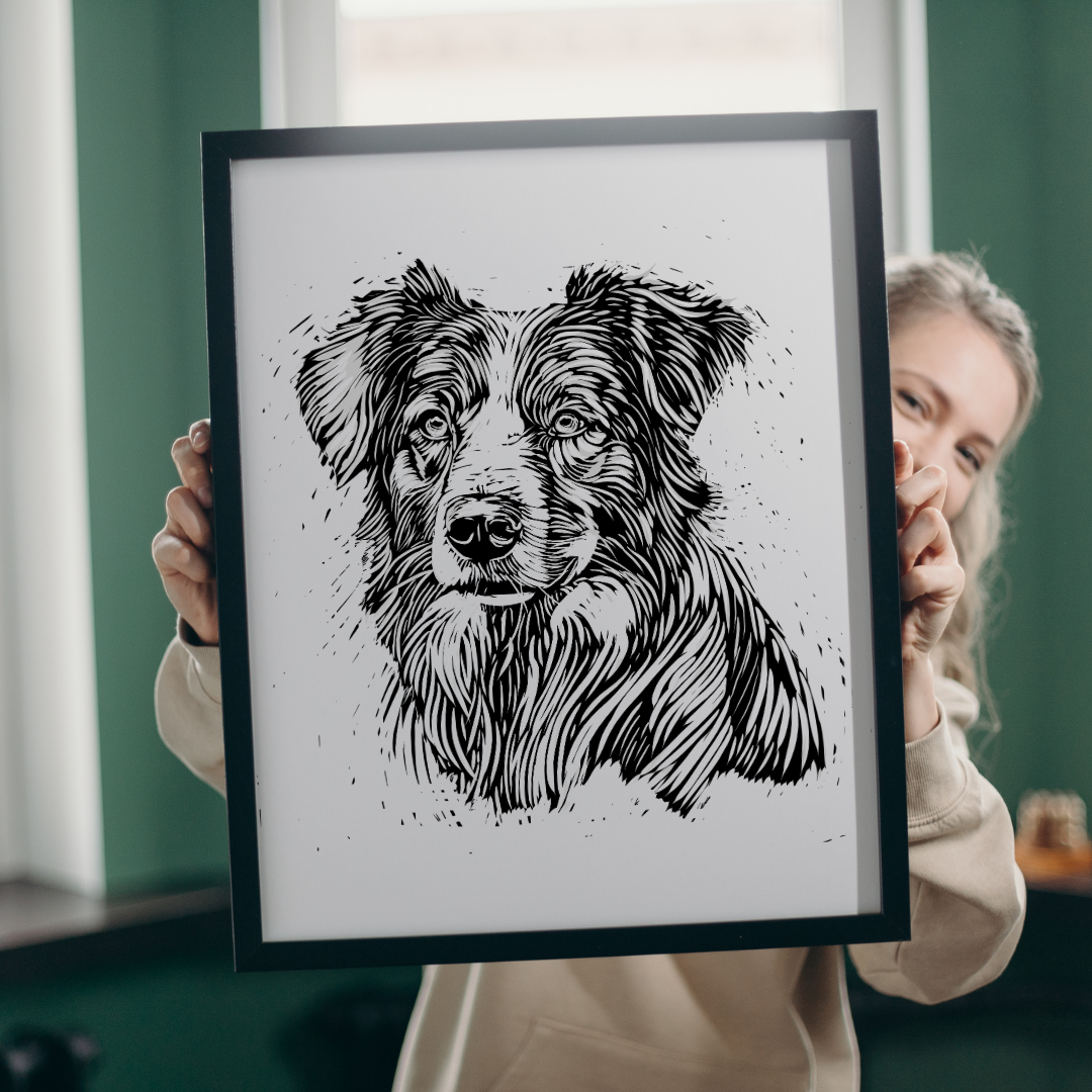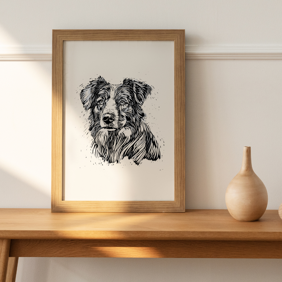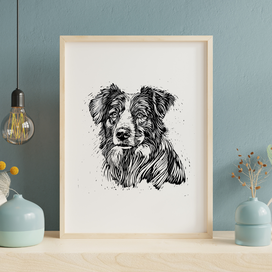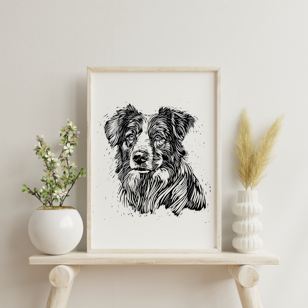 The artwork was hand designed as a relief print, great to add style to your dog loving home. It comes in various sizes and formats, ensuring flexibility in printing options. Upon purchase, the files can be accessed through your account or via an automated email for guest purchasers. You can print the artwork at home or through various printing services, using recommended materials like heavyweight matte paper or card stock for optimal results. Please note that this is a digital file, and no physical item will be shipped. Additionally, it is intended for personal use only and cannot be used for commercial purposes or resale, whether in its original form or with modifications.