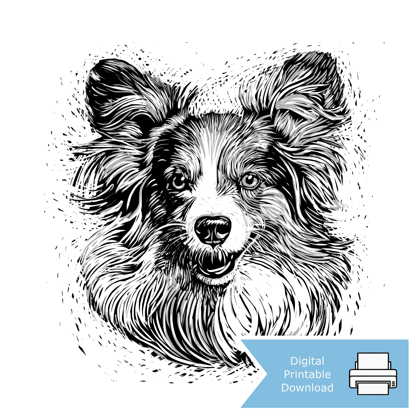 Created in a digital relief print style, the artwork combines crisp lines and subtle textures to suggest the coat’s fine detail and movement, keeping the design clean while highlighting the breed’s refined yet energetic nature. The result is a piece that feels light, lively, and full of character—perfect for lovers of small but spirited dogs.